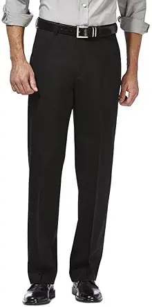 - The Haggar Men’s Premium No Iron Khaki Pant offers comfort, style, and wrinkle-free, expandable waist convenience.